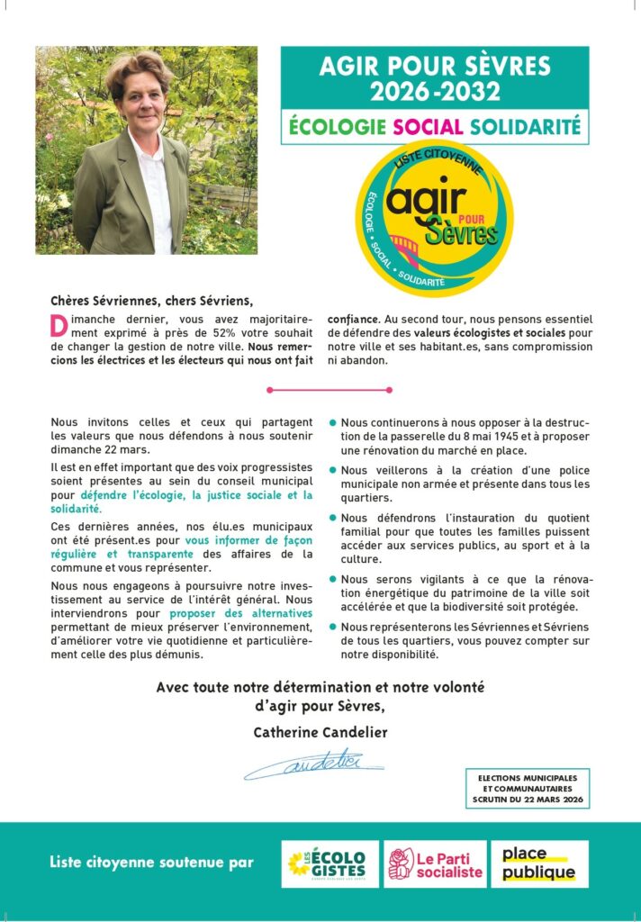 Notre profession de foi du premier tour Cette profession de foi est accessible en audio Agir pour Sevres_PrefectureTélécharger… Notre profession de foi du premier tour Lire l’article »